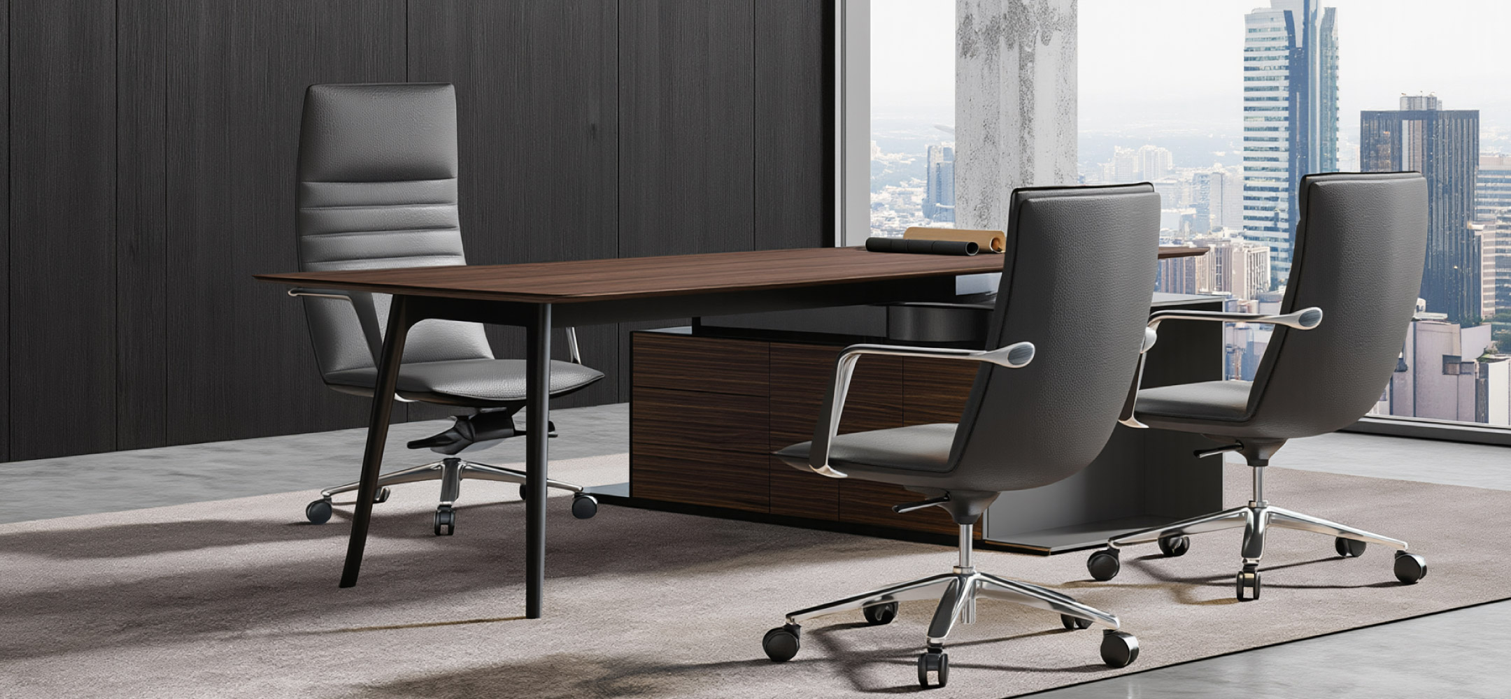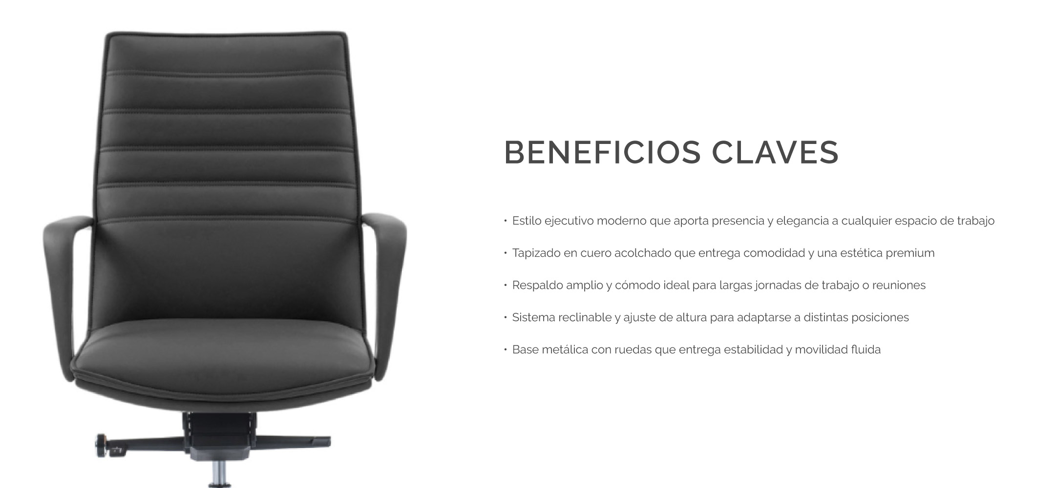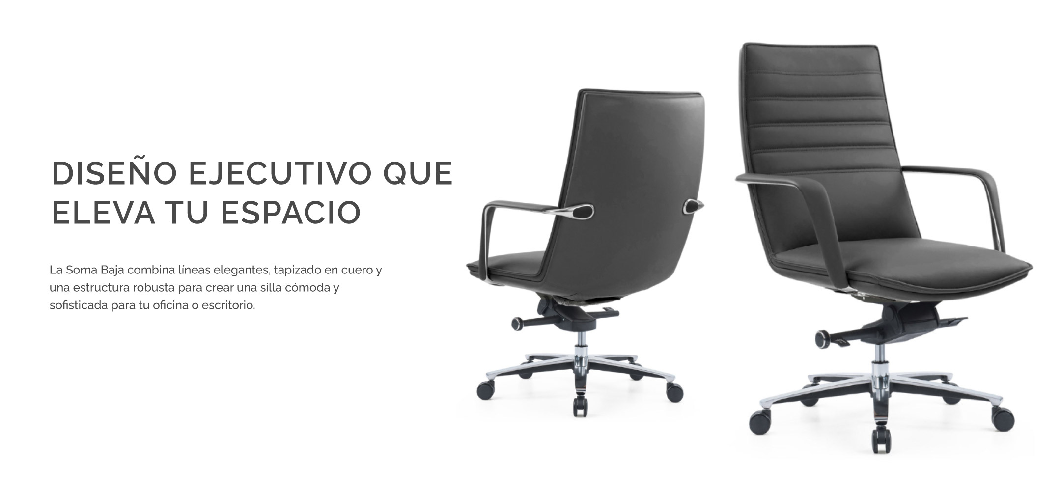 La silla ejecutiva "Soma" destaca por su silueta estilizada y minimalista. Su respaldo alto de una sola pieza fluye con líneas limpias que proyectan una imagen profesional imponente, ideal para despachos directivos o home offices de alto perfil.