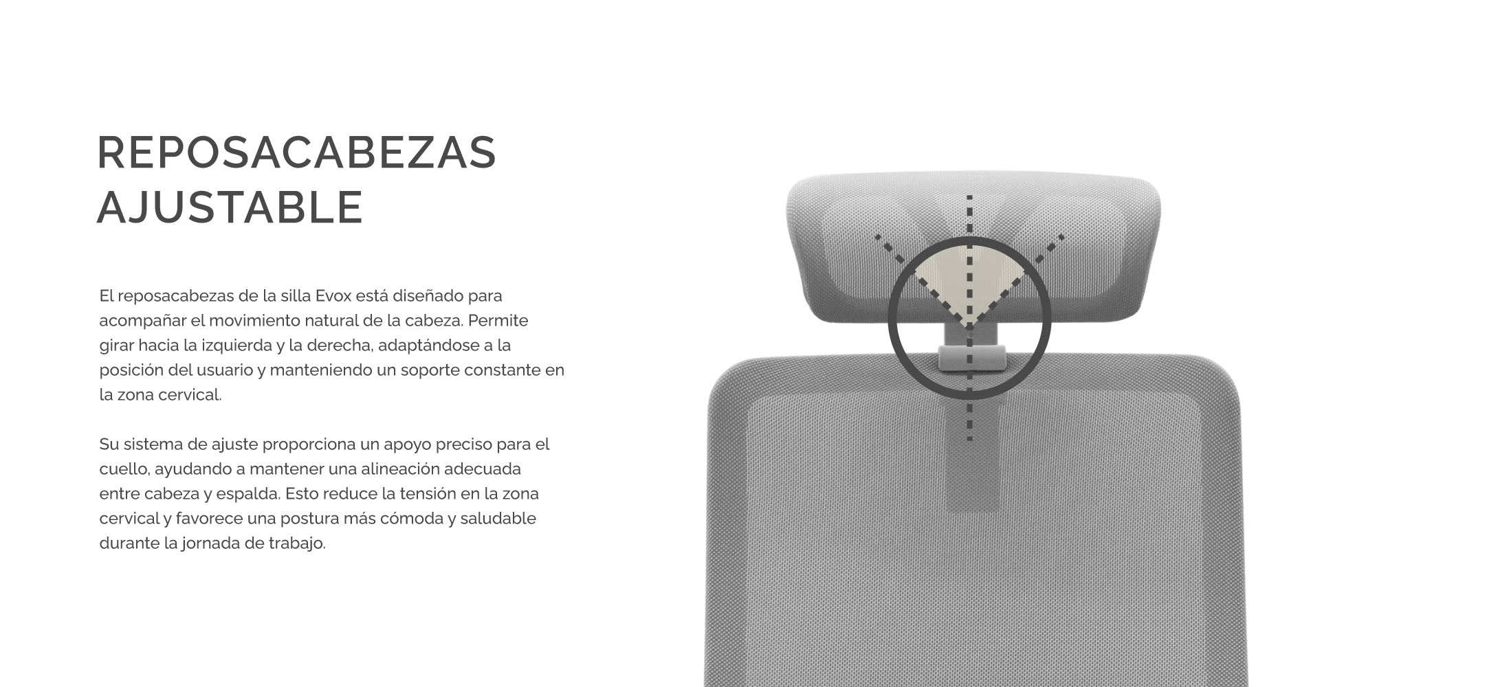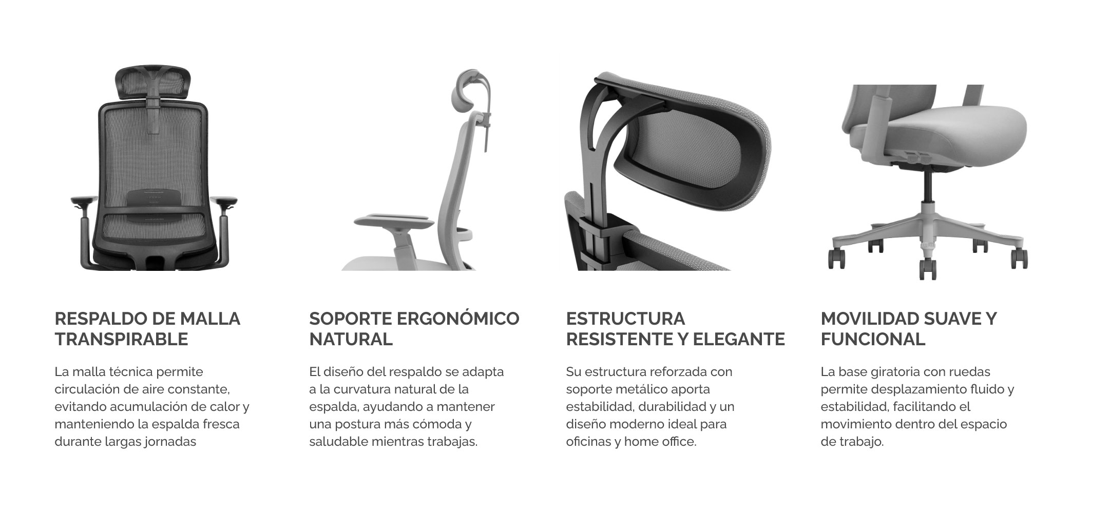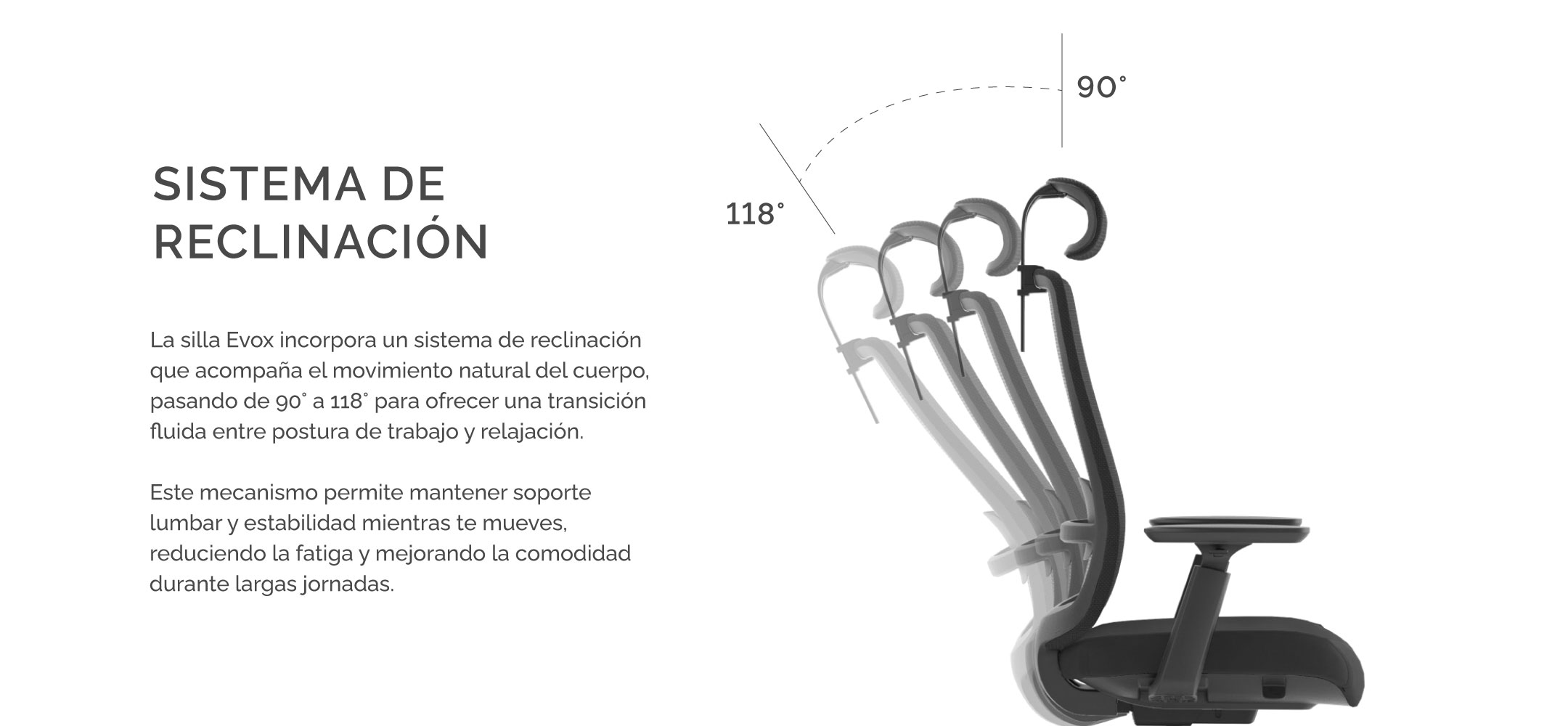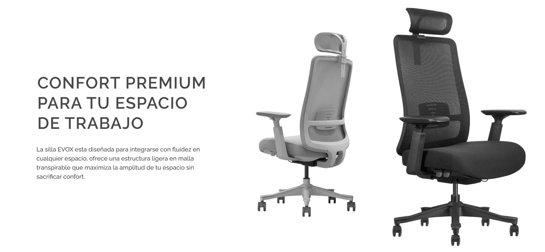 La Silla "EVOX" ha sido diseñada bajo estrictos estándares de ergonomía para garantizar una postura saludable durante jornadas prolongadas. Su estructura se adapta de forma natural a la curvatura de tu espalda, reduciendo la fatiga y previniendo dolores lumbares.