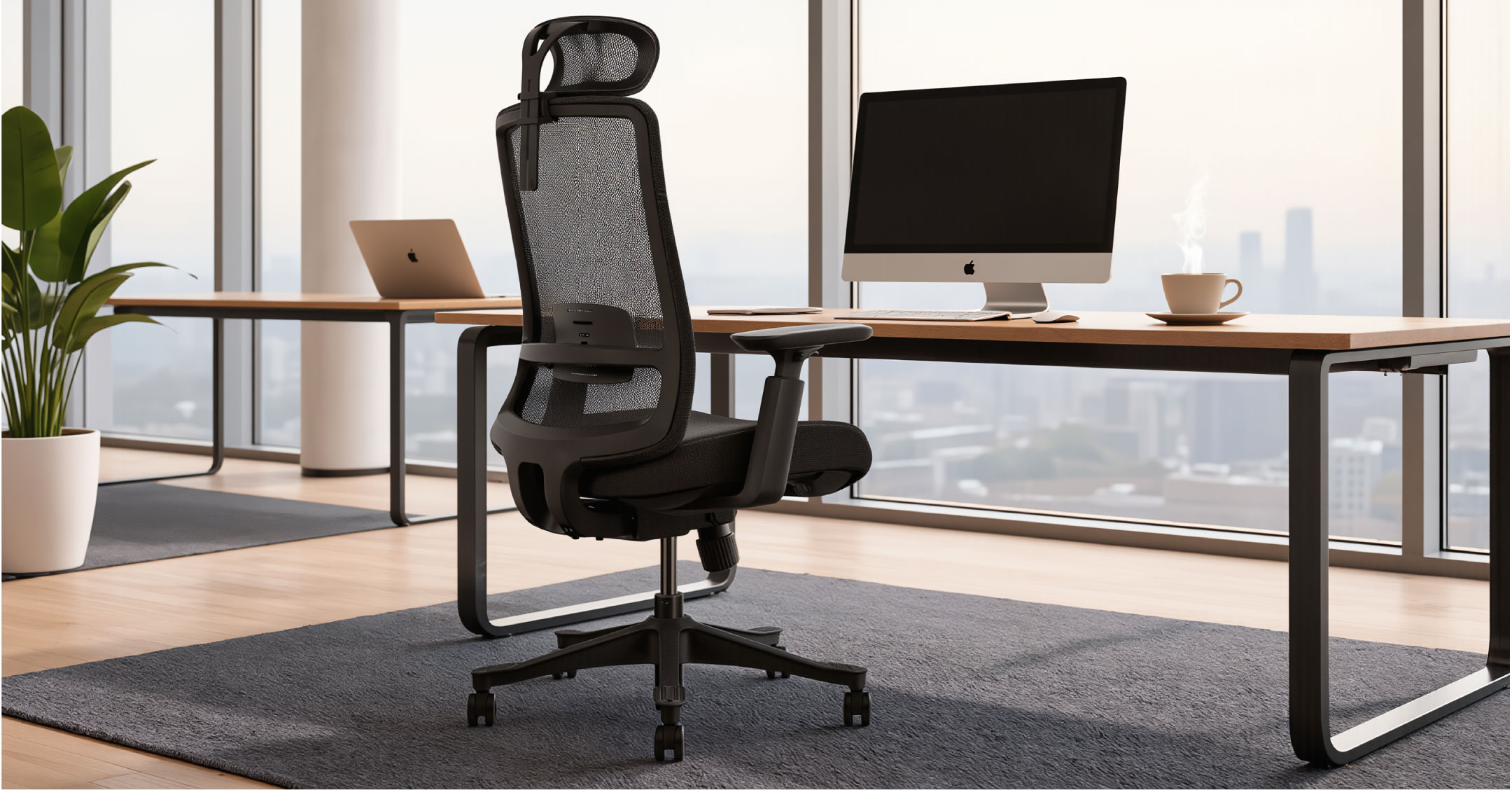- Soporte Lumbar Ajustable: El diseño del respaldo sigue la línea natural de la columna, asegurando que siempre mantengas una posición correcta frente al monitor.