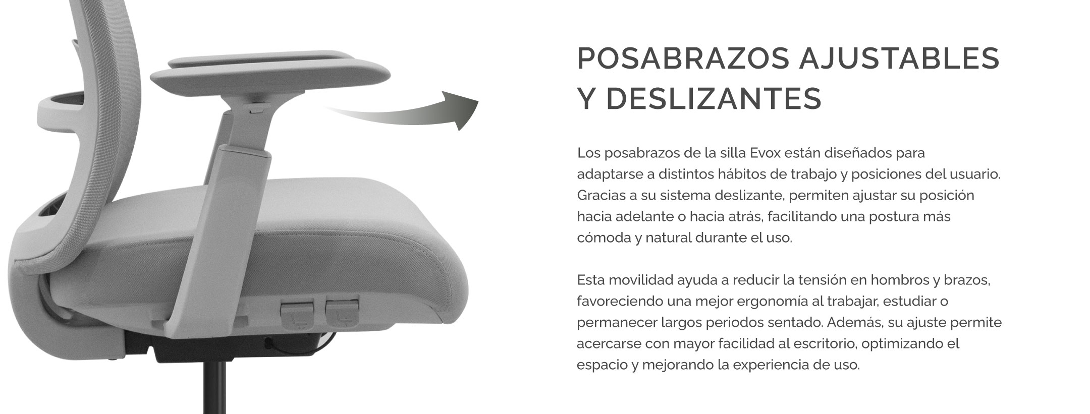 - Apoyabrazos Regulables: Ajusta la altura de tus brazos para evitar la tensión en hombros y muñecas, permitiendo una transición fluida hacia tu escritorio.
